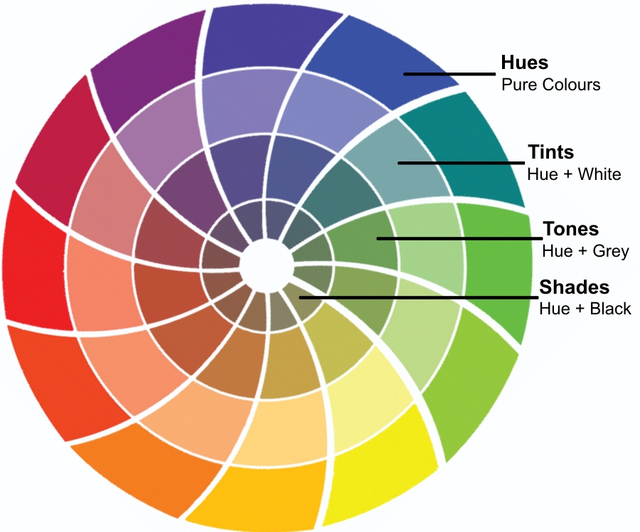On the whole, hues are usually used as accent colours or for small areas and pale to medium tints and shades as neutral colours; not just beige or white. One advantage of using neutral colours is that the focus is not on a wall but can be directed as you choose.